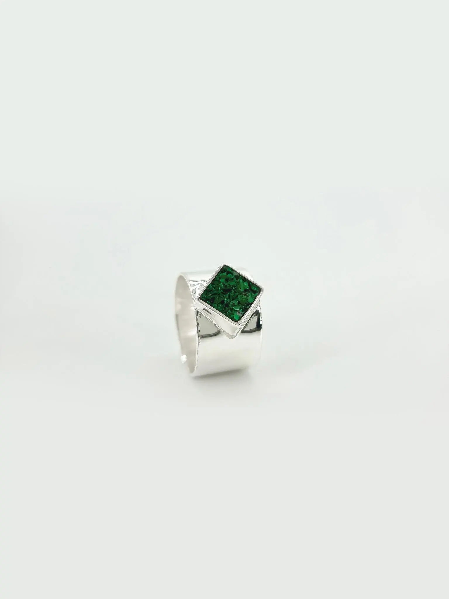 ეს ხელნაკეთი ვერცხლის ბეჭედი მალაქიტის, ფირუზის ან ჯეტის ქვის თქვენი არჩევანით არის გაბედული, მაგრამ ელეგანტური ნამუშევარი, რომელიც ბუნების სილამაზის პირად ელფერს მატებს ნებისმიერ სამოსს. იქნება ეს ბეჭედი, როგორც განსაკუთრებული საჩუქარი თუ პირადი სიამოვნება, ეს ბეჭედი აუცილებლად გახდება ნებისმიერი საიუველირო კოლექციის საყვარელი დამატება.