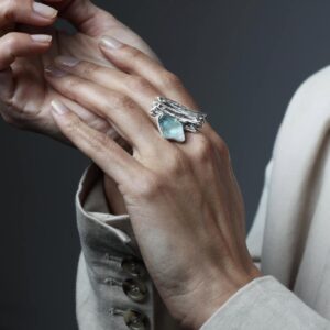 IKANI ხელნაკეთი ვერცხლის ბეჭედი – ქალებისთვის სამკაული ფლუორიტით
