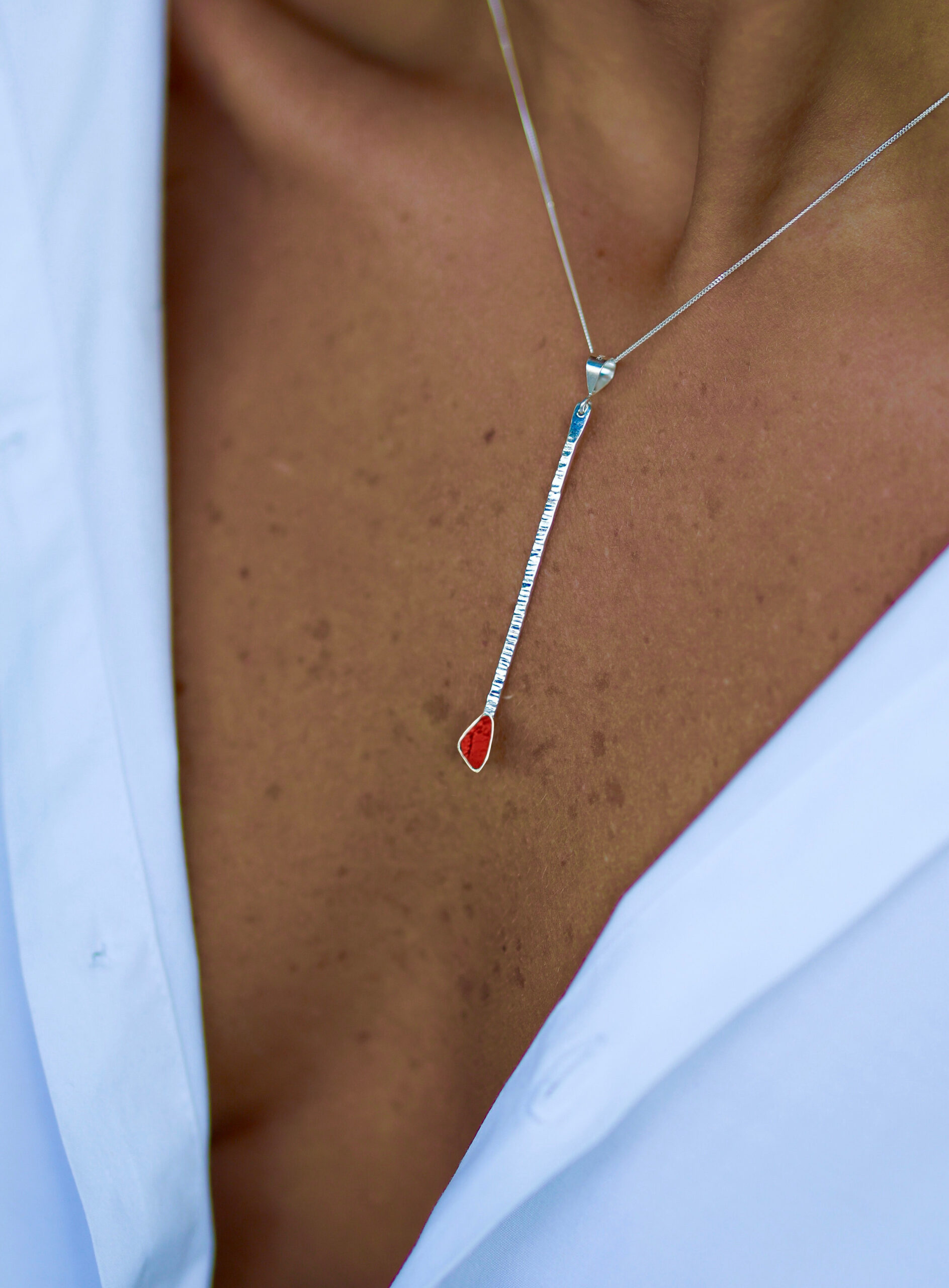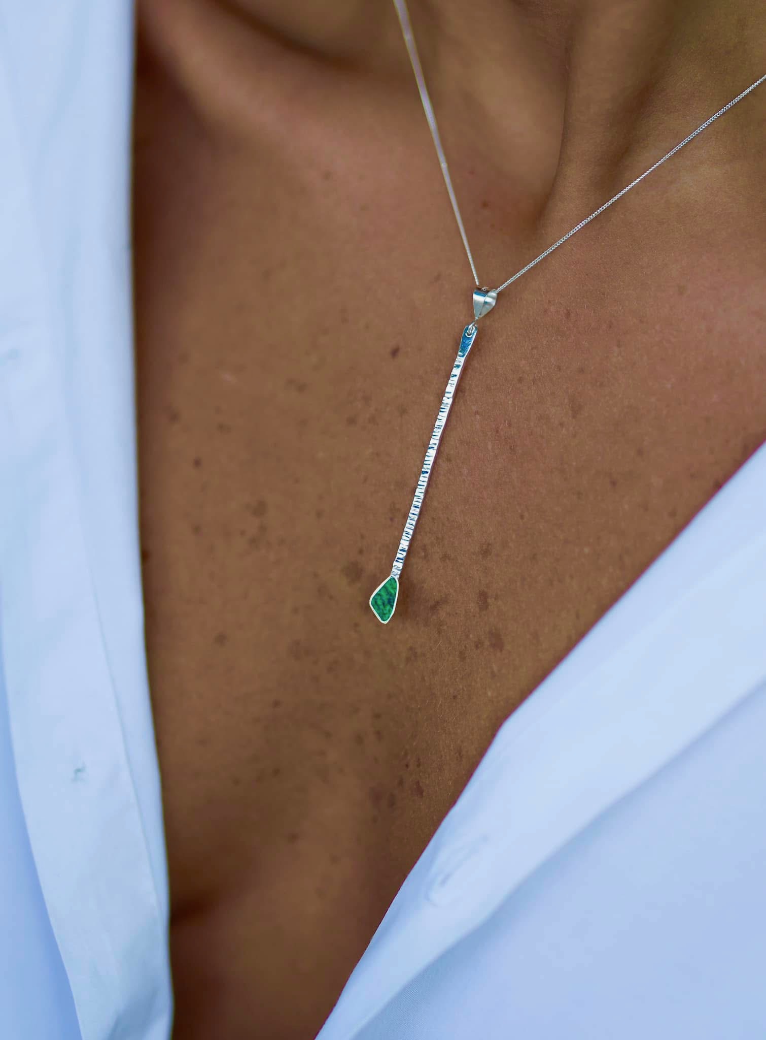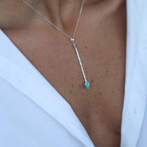 IKANI-ს უნიკალური ხელნაკეთი ვერცხლის ყელსაბამი გულსაკიდით გაერთიანებს გამორჩეულ დიზაინსა და ბუნებრივ მასალებს. გულსაკიდი მორთულია ფირუზით, მარჯანით, სადაფით ან მალაქიტით, რაც მას უნიკალურობასა და ენერგიას ანიჭებს.