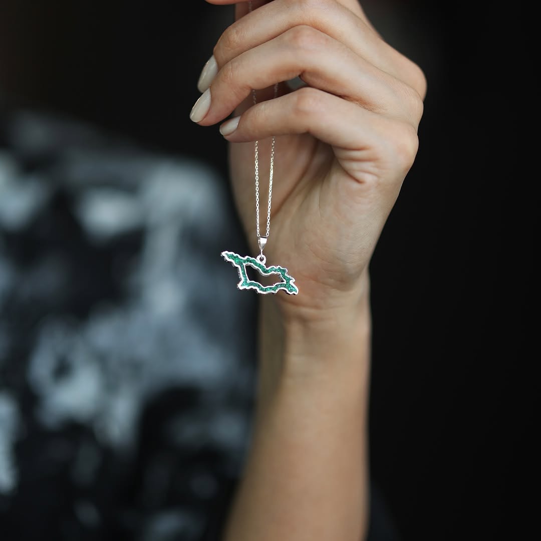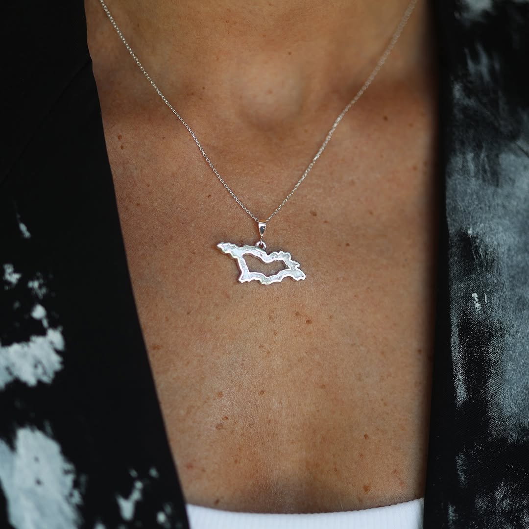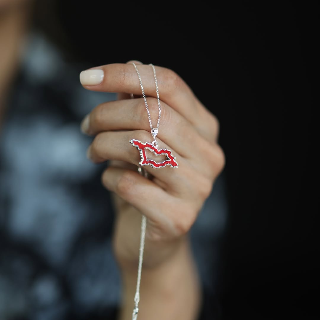 IKANI ხელნაკეთი ვერცხლის ყელსაბამი საქართველოს ფორმის გულსაკიდი – სამკაული