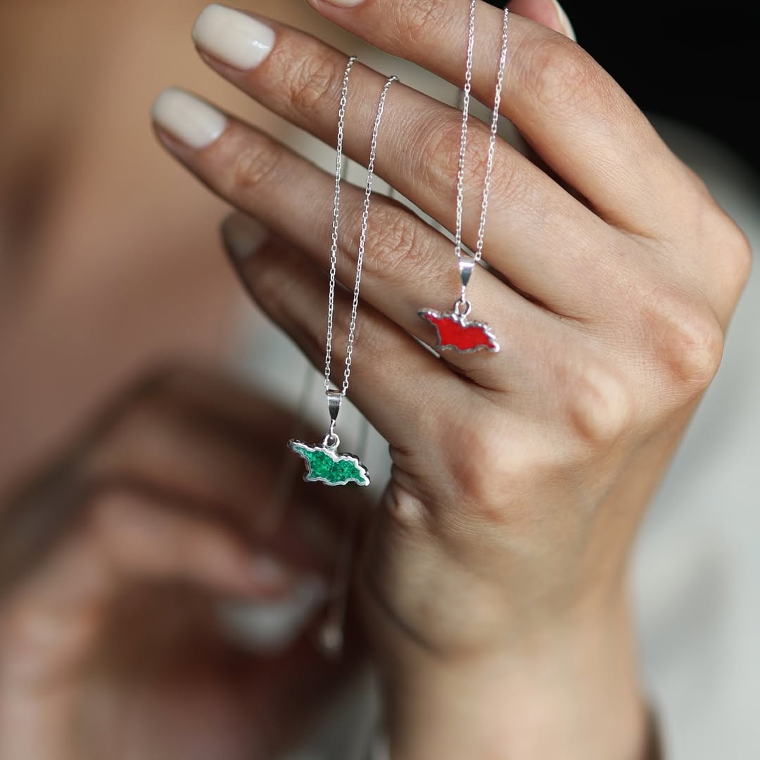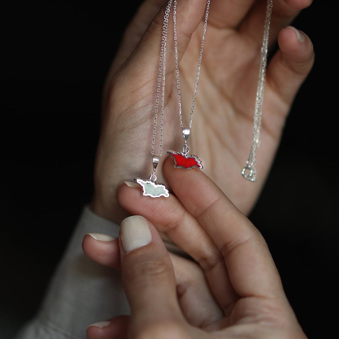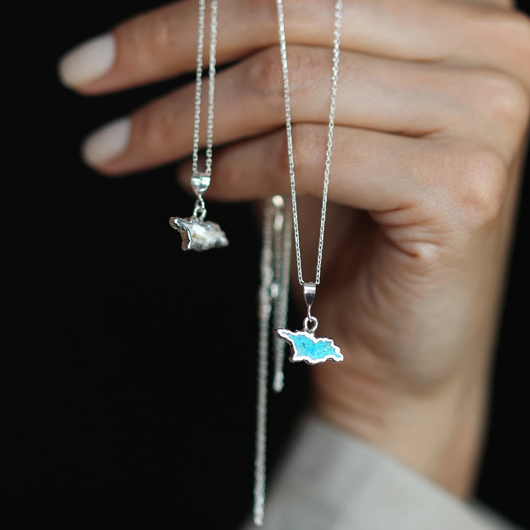 IKANI ხელნაკეთი ვერცხლის ყელსაბამი საქართველოს ფორმის გულსაკიდი – სამკაული