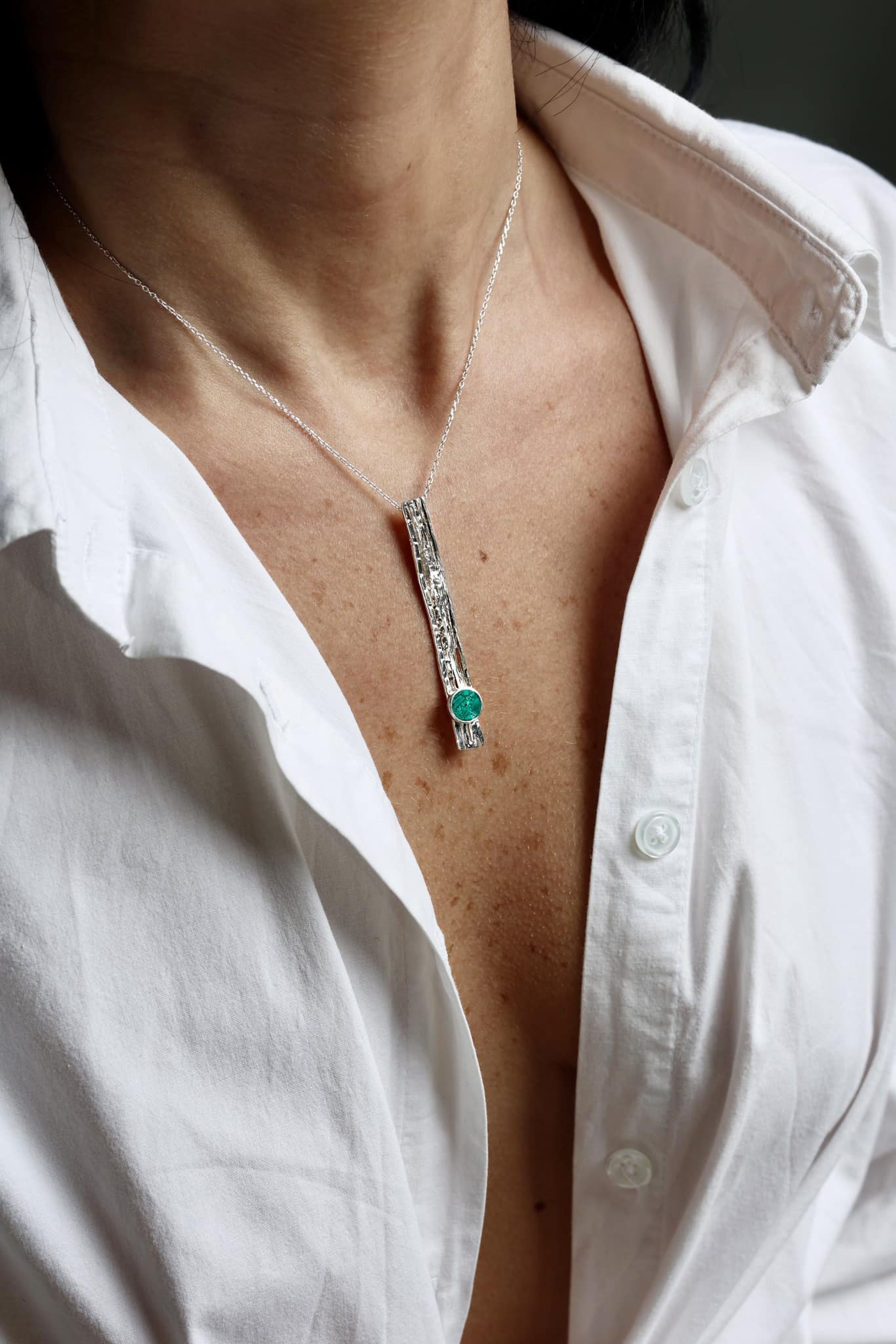 ეს ხელნაკეთი ვერცხლის ყელსაბამი ბუნებრივი ქვებით არის მრავალმხრივი და მნიშვნელოვანი დამატება ნებისმიერი სამკაულების კოლექციაში. საჩუქრად თუ საკუთარი თავისთვის, ის აერთიანებს ბუნების სილამაზეს და ხელოსნურ ოსტატობას, აქცევს მას განსაცვიფრებელ ნივთად ჩასაცმლად და დასაფასებლად.