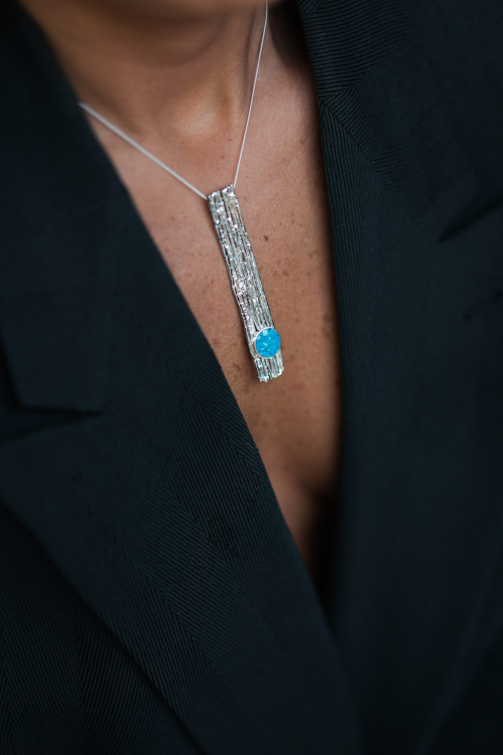 ეს დახვეწილი ხელნაკეთი ვერცხლის ყელსაბამი გამოსახულია ლამაზად დამუშავებული ბუნებრივი ქვებით, თითოეული შერჩეული გამორჩეული ფერისა და ენერგიით. მიუხედავად იმისა, გიზიდავთ ფირუზის დამამშვიდებელი ფერები, ამეთვისტოს მძლავრი სიღრმე თუ იასპერის მიწიერი ტონები, თითოეული ქვა შედგენილია მაღალი ხარისხის ვერცხლით, რათა შეიქმნას მარადიული ნაჭერი, რომელიც აძლიერებს ნებისმიერ სამოსს.